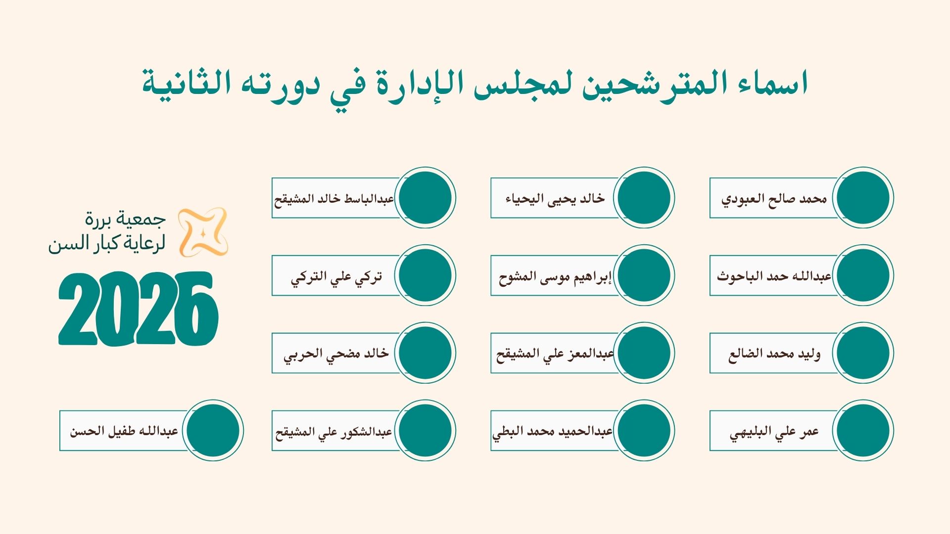 قائمة بأسماء المترشحين لمجلس ادارة الجمعية في دورته الثانية